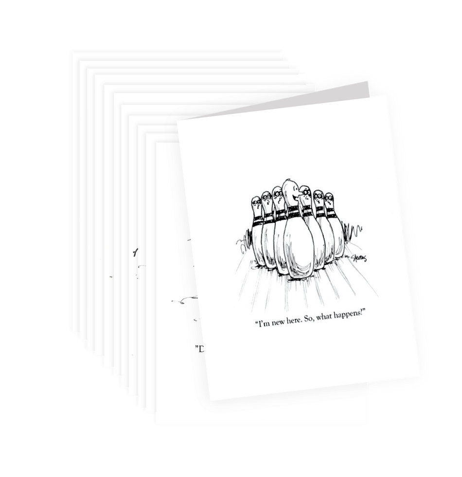 A collection of 12 greeting cards that are blank on the inside. Perfect for spreading some silliness and joy to friends & family.